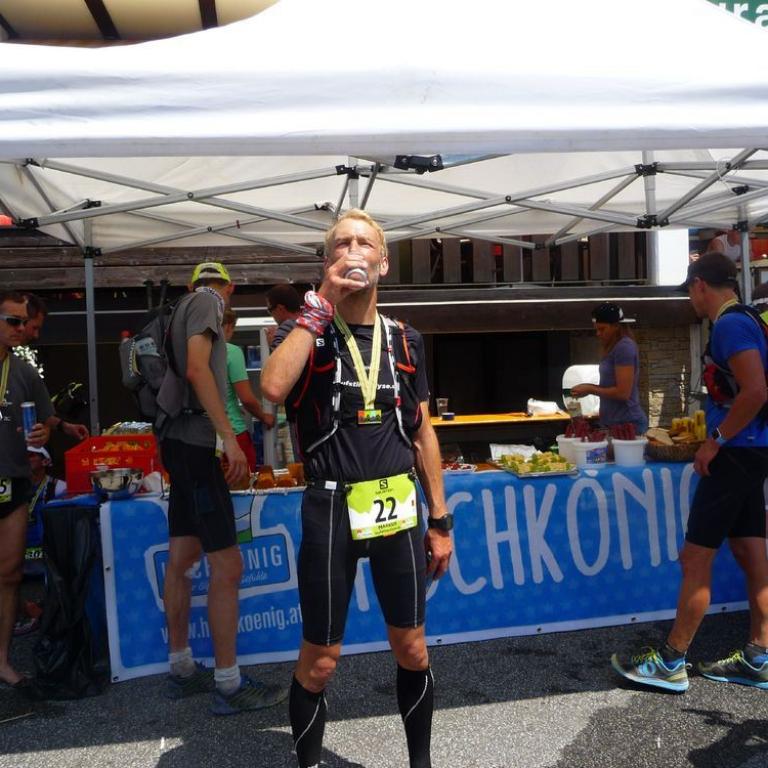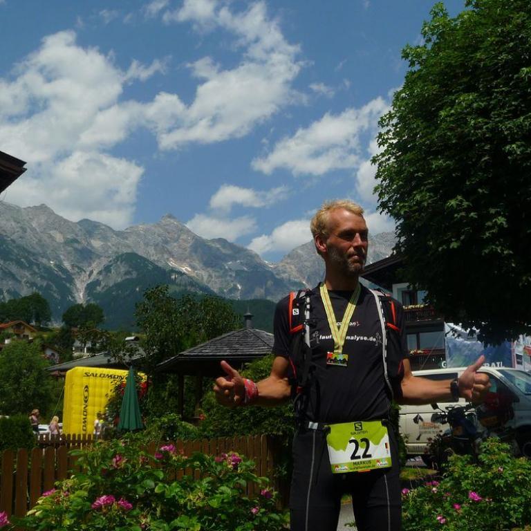 Der Körper war schwach, der Geist willig :-) Also Schmerzen verdrängen und die letzte Etappe in Angriff nehmen. So der Plan. Mit Papa fuhr ich schon um viertel nach 5 nach Lofer. Meine Mama, Brigitte und Emma werden mich erst im Ziel empfangen, sollte ich es bis dahin schaffen. Und auch bei der letzten Etappe mit 43 Kilometer und 2500 Höhenmeter stand ich wieder im Block A bei den besten 150 Läufern und Läuferinnen. Kurzzeitig war mein Start gefährdet, da ich statt der vorgeschriebenen 1,5 Liter Flüßigkeit nur einen Liter dabei hatte. Bisher hatte ich an der Kontolle keine Probleme, aber diesmal wurde ich abgewiesen. Also musste ich 15 Minuten vor dem Start noch schnell 0,5 Liter Wasser in einem Cafe kaufen und in meinen Trailrunningrucksack packen. Aber dann durfte ich in den Startblock und bis ich mich versah liefen wir auch schon los. Mein Papa machte noch Fotos und feuerte mich an. Auf dem Tauernradweg liefen wir zuerst 2,5 km relativ gerade. Es war nur ein 4:30 er Schnitt möglich, mehr gaben die Füße nicht mehr her. Man merkte allen Teilnehmern die Strapazen der vergangenen Tage an. Dann mussten wir wieder einmal einen steilen Wurzelweg nach oben. Ich kam aber bald in Tritt und langsam flutschte es. Nach 1 Stunde hatte ich die ersten 700 Hm geschafft. Dann führte uns ein Trail immer der Höhenlinie entlang bis kurz vor Hirschbichl. So richtig vorwärts kam ich nicht mehr, aber überholt wurde ich auch nur selten. Alle hatten zu kämpfen. Das Wetter, wie auch die Landschaft waren traumhaft, aber genießen konnte ich schon lange nicht mehr. Ca. 1 km ging ich bis zur Litzalm auf 1310 m, wo die erste Verpflegungsstelle mit kühlen Getränken und Snacks wartete. Ich aß etwas, füllte Getränke auf, lief aber dann auch gleich wieder weiter. Über einen kurzen Downhill gelangte ich auf eine Forststraße auf der ich Gas geben konnte. In der Nähe des Parkplatzes Hintertal wartete schon mein Papa auf mich, der mich motivierte und per Handy Brigitte mitteilte wie die Lage war. Ich meinte nur, das ich das Ding ins Ziel bringen werde :-) Auf Forststraßen teilweise eben, teilweise bergauf gelangte ich zur Kallbrunnalm auf 1454 m. Die Kulisse ist traumhaft, aber für so etwas hatte ich keine Zeit. Über einen schnellen Abstieg erreichte ich den Dießbachstausee auf 1415 m, wo die zweite Verpflegungsstelle war. Nochmals füllte ich Getränke nach. Ich war schon fast 3 Stunden unterwegs, hatte 1400 Hm und 20 km hinter mich gebracht. Für mich war klar, das ich auch den Rest noch schaffen werde. Dafür war ich viel zu motiviert. Klar schmerzten die Füße, aber eigentlich lief ich noch ganz gut und kam dadurch auch zügig voran. Bei ca. 24 km gelangte ich auf einen kleinen Steig, der steil nach oben führte. Ich hielt mich in einer kleinen Gruppe, die alle mein Tempo hatten. An Laufen war bei der Steigung nicht mehr zu denken. Wir kämpften uns 700 Hm bis zum Ingolstätter Haus. Teilweise ging es über Schneefelder und losem Geröll vorwärts. Abgekämpft liefen wir am Ingolstätter Haus vorbei. Zefix, da sitzen Wanderer bei Weißbier und Kaiserschmarrn und ich muß weiter :-) Ab hier befanden wir uns im Steinernen Meer, wo volle Konzentration gefragt war. Es ging nur über kippelige Steine, Geröll, spitze Steine und Schnee. Nur meterweise war laufen möglich, ansonsten war es mehr steigen, klettern und springen. Die 6,5 km bis zum Riehmannhaus auf 2177 m zogen sich ewig. Ich kam durch ein steinernes Tor und stellte fest das ich 2500 Höhenmeter und somit sämtliche Anstiege geschafft hatte. 8 km brauchte ich "nur" noch den finalen Downhill runtersausen, dann hatte ich es geschafft. Es war aber nicht einfach. Ein steiler, seilversicherter und nicht ungefährlicher Steig führte mich nach unten. Alles brannte wie Feuer und tat weh, aber das Ziel war nah. Am Fuße des Steiges befand sich noch eine Verpflegungsstelle, wo ich nochmal einen Schluck Iso nahm. Die letzten 4 km auf einer Forststraße genoss ich mit einem teilweise 3:50 Schnitt. Kurz vor dem Ziel in Maria Alm standen auch schon meine Mama, Brigitte und Emma die mir entgegen jubelten. Die kleine Maus durfte natürlich mit mir durchs Ziel laufen, wo mich auch mein Papa jubelnd empfing. Ich war überglücklich diese letzte Mörderetappe nach 6 Stunden 46 Minuten und 17 Sekunden als 36. in der Altersklasse einigermaßen überlebt zu haben und somit meine Familie wieder in den Arm nehmen zu können, die mich bei all meinen Events immer tatkräftig unterstützen. Dankeschön Mama, Papa, Brigitte und Emma !!!!