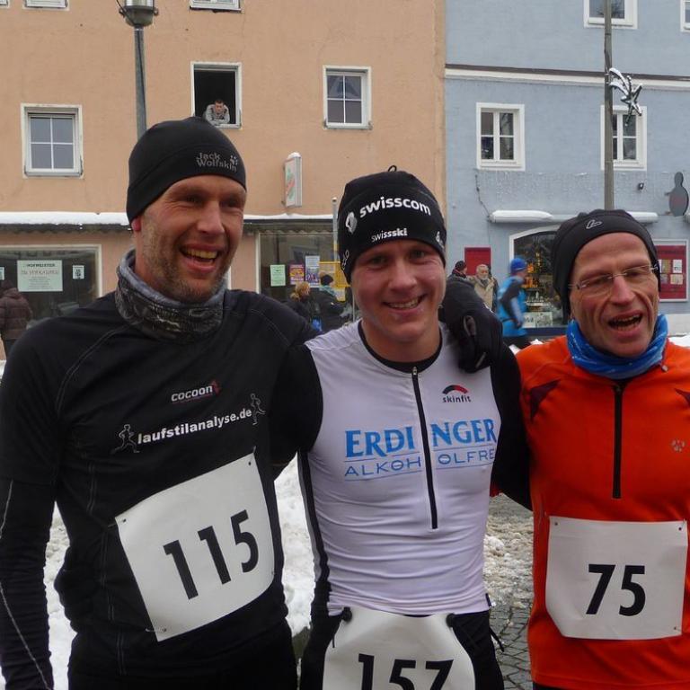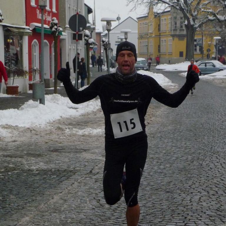 Zum Abschluss des Jahres 2014 stand ich noch am Start des Silvesterlaufes in Bogen. Irgendwie ähneln sich immer meine Wettkampfberichte in Sachen Wettkampfvorbereitung :-) Auch dieses mal war ich die Tage davor etwas verschnupft und hatte mir auch noch das Kreuz verrissen. Aber trotzdem war ich motiviert, wieder relativ fit und stellte mich gleich mal mit meinem Laufstilanalyse.de Kollegen Florian in die erste Reihe. Auch Hans und Christoph waren mit von der Partie. Nach dem Startschuß übernahm ich gleich mit einem 2:45 Schnitt die Führung und die Meute hetzte hinter mir her. Nach einer Runde zog Florian, der eine super Performance ablieferte, an mir vorbei. Ich musste ihn ziehen lassen und hoffte auf einen Einbruch bei ihm, der aber nicht kam :-) Ich wurde noch von zwei Läufern gejagt, die aber den Abstand zu mir nicht verringern konnten. 5 Runden mussten wir teilweise auf vereistem Bürgersteig bewältigen. In der letzten Runde versuchte ich nochmals etwas näher an Florian zu kommen, was mir aber nicht gelang. Im Hoch schaffte ich einen Puls von 200 Schlägen in der Minute. Dachte solch ein Höchstpuls wäre bei mir gar nicht mehr möglich. Ich kam nach 32 Minuten 51 Sekunden auf 9 km als 2. Gesamt und 1. in der Altersklasse ins Ziel. Florian holte sich mit einer saustarken Leistung den verdienten Sieg. Der Bogener Silvesterlauf war fest in Laufstilanalysehand :-) Ich war nun zum 8. Mal bei diesem Lauf dabei und schaffte auch noch eine persönliche Bestzeit.