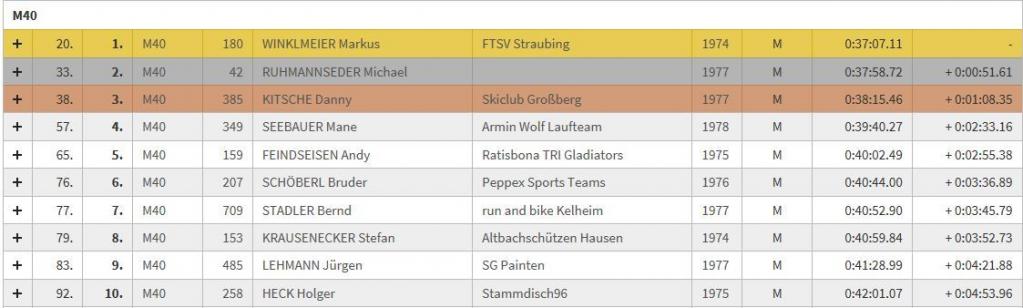 Das diesjährige Silvestermotto von Florian Neuschwandner war, Ballern statt Böllern und so wollte ich es auch handhaben. Ich fuhr nach Sandharlanden um beim Silvesterlauf auf der knapp 10 Kilometer Strecke zu ballern. Über 600 weitere Läufer standen mit mir um 10 Uhr am Start, bei leichtem Regen und knapp über dem Gefrierpunkt. Nach dem gestrigem Tri.P.coaching Training mit 4,6 km Swim und 25 km Koppellauf hatte ich die richtige Vorspannung :-) Nach dem Startschuß ging es wie immer zur Sache. Mit einer 3:36 er Pace ballerten wir den ersten Kilometer. Dann pendelte ich mich auf 3:48 ein. Ich hatte schwere Füße vom gestrigem Training, aber trotzdem lief es. Nach 3 Kilometer musste ich kämpfen um nicht den Anschluss an einer Gruppe zu verlieren. Bei Kilometer 8 schnupfte ich dann die gesamte Gruppe mit ca. 10 Läufern, in der ich mich befand. Den letzten Kilometer konnte ich nochmals einen Gang hochschalten auf eine 3:38 Pace un kam als 20. Gesamt ins Ziel. Die Altersklasse M40 konnte ich locker gewinnen :-) Klar war es keine Bestzeit, aber 37:07 konnten sich trotzdem sehen lassen. Ballern statt Böllern :-)