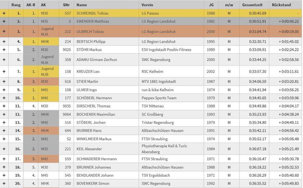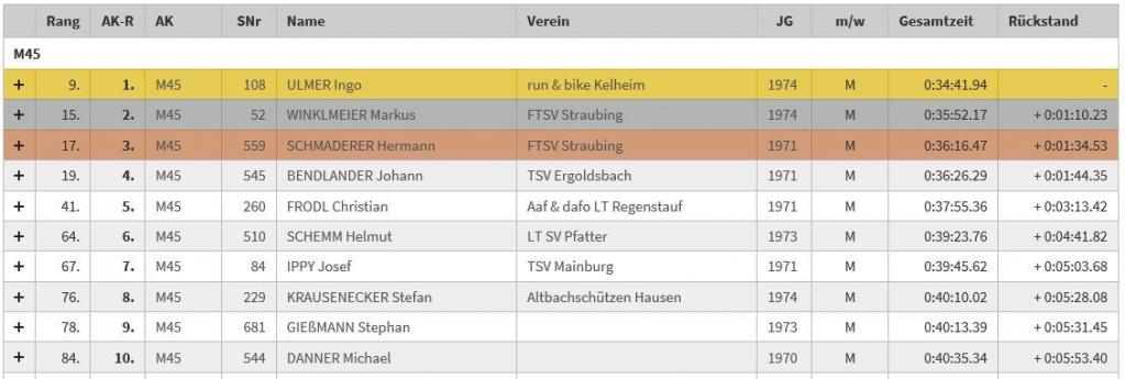 Nach dem erfolgreichen Vorsilvesterlauf in Aschau vor drei Tagen mit 17:47 Minuten auf 5 km, war ich natürlich noch motivierter auf der 10 Kilometer Strecke in Sandharlanden so richtig zu ballern, um das Jahr 2019 zufrieden abschließen zu können. So nebenbei war es mein 200. Wettkampf in meinem Sportlerleben :-) Mit meinem Laufkumpel Michael und meinem Papa fuhr ich nach Sandharlanden bei Bad Gögging. Wir trafen viele bekannte Gesichter bei der Startnummernausgabe, auch einige Triathlonkollegen von tRi.P.coaching und Laufkollegen vom FTSV Straubing. Das Wetter war ideal, Sonne und Temperaturen um den Gefrierpunkt. Fast 1000 Läufer und Läuferinnen standen am Start des 30. Silvesterlaufes. Michael, Flo und ich reihten uns in vorderster Front ein. Ich war heiß auf ein weiteres Rennen am Limit und vielleicht auch über dem Limit :-) Nach dem Startschuss war das Gedränge groß, aber es zog sich schnell auseinander. Wie schon in Aschau lief ich den ersten Kilometer in einer 3:20 er Pace. Die absolute Elite von etwa 10 Läufern zog davon. Ich hielt mich wacker an ca. 20. Stelle. In einer 5 er Gruppe konnte ich im Windschatten laufen und kam relativ "locker" nach Bad Gögging, wo die 5 km Marke war. Hier merkte ich das noch etwas Power in meinen Füßen stecke und ich setze mich vor die kleine Gruppe. Es ging in der Ortschaft einen kleinen Berg nach oben. Der Bergläufer in mir kam heraus :-) Mein Puls lag bei 175 Schläge und ich musste alles investieren um die Pace hoch zu halten. Dann lief ich, knapp gefolgt von der Gruppe, leicht bergab um dann nochmals eine leichte Steigung zu meistern. Ich war bei Kilometer 8 angelangt und hinter mir war eine ziemliche Lücke. Von hinten sollte mir keiner mehr gefährlich werden. Nur vor mir konnte ich noch den ein oder anderen Läufer einkassieren. Relativ schnell überholte ich einen Athleten, da dieser dank Seitenstechen erheblich langsamer wurde. Ca. 20 m vor mir war noch ein weiterer Läufer in Reichweite. Ich investierte meine letzten Reserven um auf ihn aufzulaufen. Nur hatte auch er noch Reserven, die er auf den letzten 500 m ins Ziel ausspielte und mir wieder einige Meter abnahm. Völlig außer Atem lief ich durchs Ziel, wo mich mein Papa schon erwartete. Ich sah auf die Uhr und konnte wieder sehr zufrieden sein. Mit einer 3:39 Pace lief ich die welligen 9,85 km in 35:52 Minuten. Das ergab einen 15. Gesamtplatz von 578 Läufern und in der Altersklasse erreichte ich einen 2. Platz von 61 Athleten. Mit einem Treppchenplatz konnte ich das Jahr zufrieden abschließen :-) Zusammen mit den anderen FTSV Läufern feierten wir noch die super Zeiten und blieben bis zur Siegerehrung