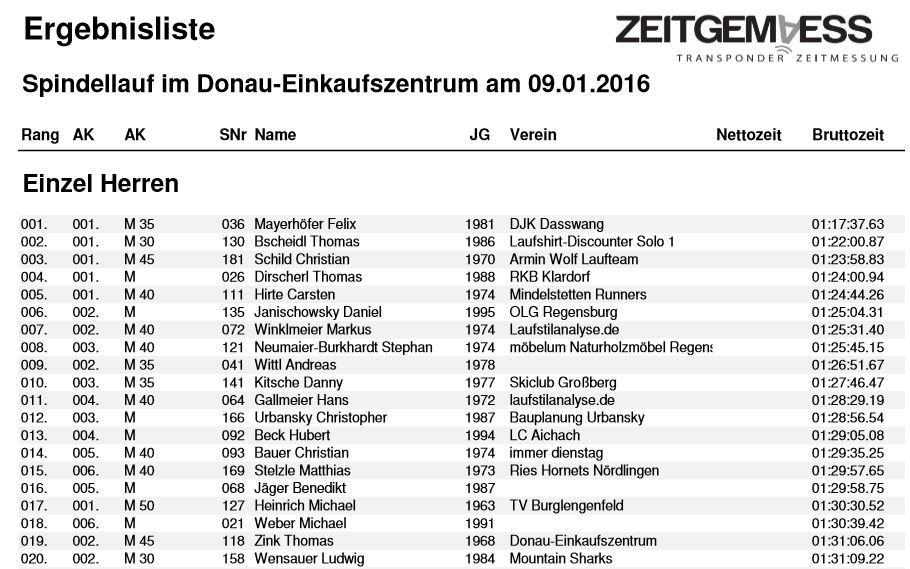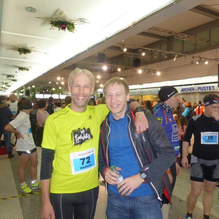Zum 4. Mal in Folge wollte ich beim Spindellauf im Donaueinkaufszentrum starten. 14 Runden, 21 Kilometer und 600 Höhenmeter waren zu meistern. Mit Brigitte und ihrem Bruder Hans fuhr ich am Samstagabend ins DEZ. Hier trafen wir meinen Papi, der ebenfalls gekommen war um mich anzufeuern. Ich fühlte mich fit, die Beine zu Bestzeiten aufgelegt und Motiviert bin ich immer bis ins letzte vor einem Wettkampf. Ich freute mich schließlich wieder tierisch auf die Saison 2016 und der Spindellauf machte den Anfang. Ich holte meine Startunterlagen und zog mich langsam um. Um 20 Uhr machten alle Läden dicht und die Läufer fanden sich bei der Wettkampfbesprechung. Ich lief noch ein paar Meter ein und ging dann gemütlich an den Start. Es waren ca. 200 Einzelläufer und 100 Staffeln am Start. Mein Ziel war eine Top 10 Platzierung. Im letzten Jahr verfehlte ich diese knapp mit meinem 11. Platz. Die gesamte Strecke war voll von Zuschauern, was natürlich motivierend ist. Einige Livebands spielten einen super Hardrock an der Strecke. Klar gebe ich bei ACDC `s Highway to Hell noch mehr Gas :-) Um 20:30 Uhr fiel dann der Startschuss. Am Anfang ist es schon ein Kampf und ich wurde ziemlich ausgebremst durch die engen Gänge, aber schnell zog sich das Feld auseinander. Ich sauste zum ersten mal die Parkplatzspindel nach oben und war nur am überholen. Das macht Spaß. Durchs Einkaufszentrum wurden wir lautstark angefeuert. Nach der ersten Runde lag ich an 13. Stelle, was die Läufer an einer großen Leinwand ablesen konnten. Brigitte, Hans und mein Papi standen am höchsten Punkt der Spindel und riefen mir lautstark zu. Bei mir lief es einfach. Nach 7 Runden, d.h. der Hälfte war ich noch immer super drauf. Zu diesem Zeitpunkt lag ich auf dem 10. Rang, also Top 10. Aber vielleicht geht noch mehr. Auch nach 10 Runden konnte ich die Spindel mit einem Hammerspeed nach oben drücken. Ich überrundete viele Läufer, aber auch der großteil der Teams wurde von mir vernichtet :-) Langsam wurden die Beine schwerer, aber als ich nach 11 Runden schon auf dem 9. Gesamtplatz lag, war ich noch mehr motiviert evtl. weitere Plätze nach vorne gut zu machen. Und weiter ging es die Spindel bei rockiger Musik nach oben und wieder nach unten. Ich kam immer näher an einen schnellen Einzelstarter. Und schon hatte ich den 8. Rang. Noch zwei Runden. Noch immer lief ich mit einem Affenzahn durch das Einkaufszentrum. Nach 13. Runden befand ich mich auf dem 7. Platz. Den gebe ich nicht mehr her :-) In der letzten Runde gab ich noch einmal alles und legte auch noch einen filmreifen Zielsprint hin. Nach 1:25:31 kam ich als Gesamt 7. ins Ziel. In meiner Altersklasse holte ich den 2. Platz. Es war auch noch eine 4 Jahres Spindellaufbestzeit, die ich heimfahren konnte. Yheeaaaa so kann die neue Saison beginnen :-)