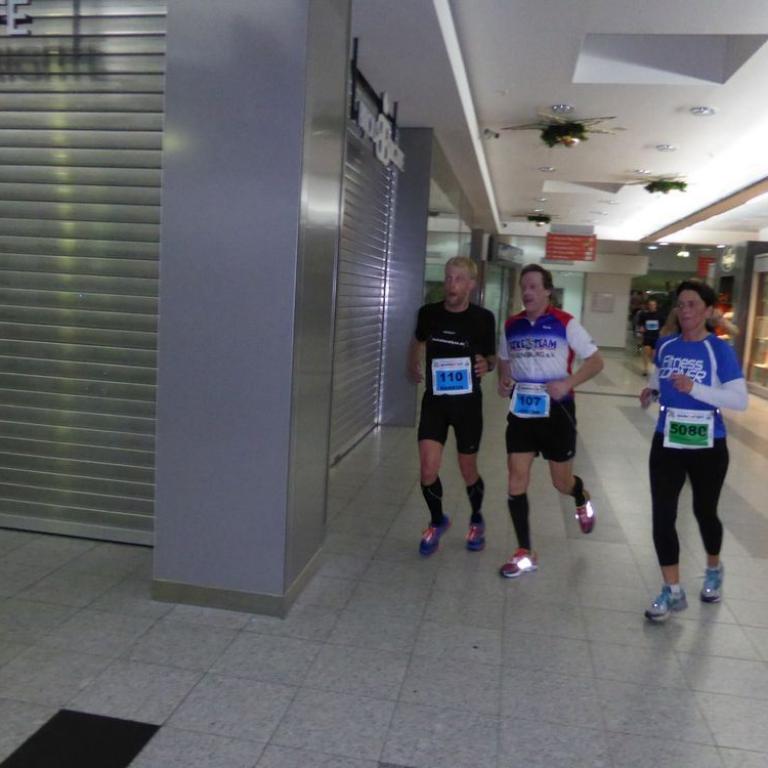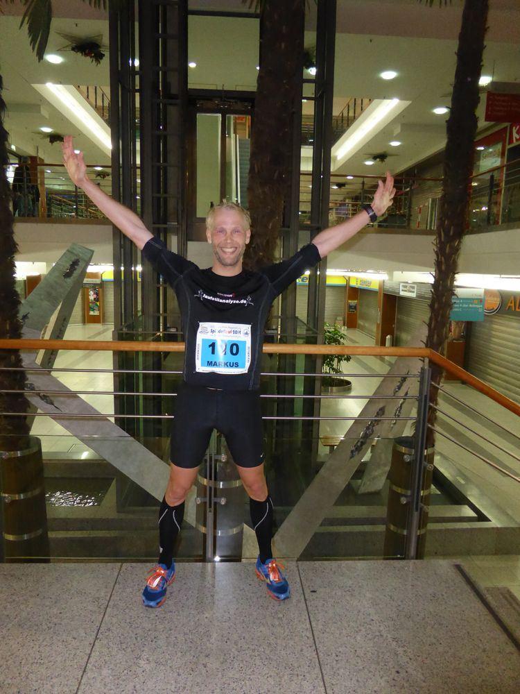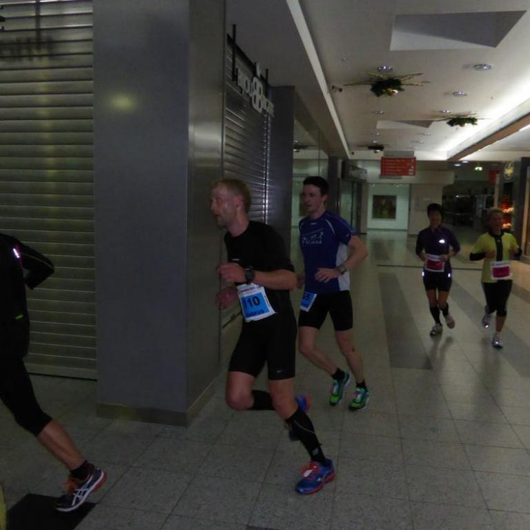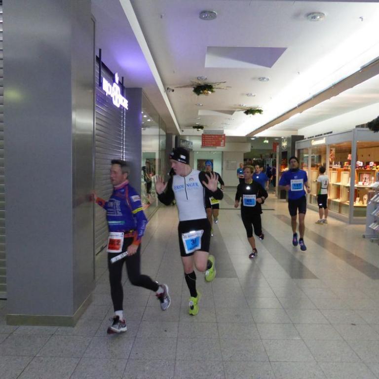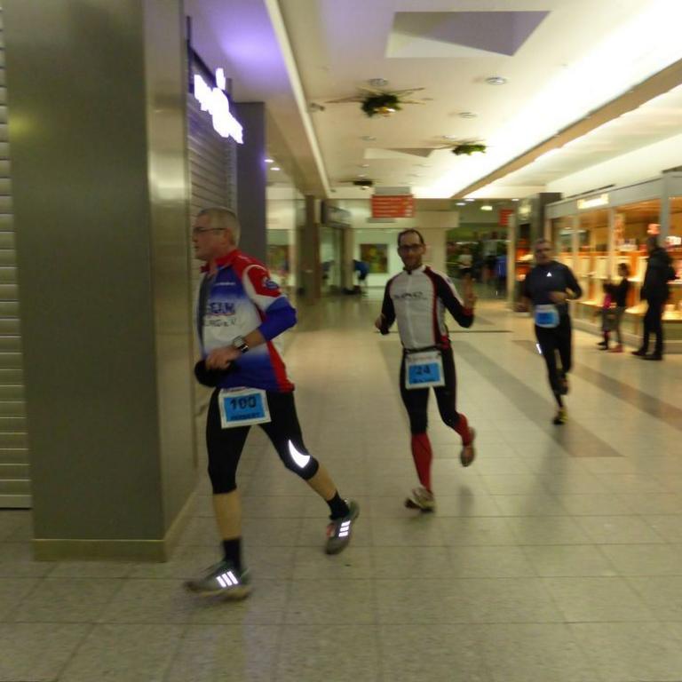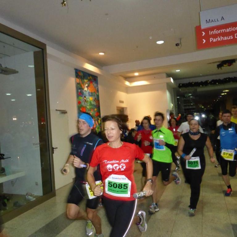 Mein erster Wettkampf im neuen Jahr, der Spindellauf in Regensburg im DEZ. Irgendwie bin ich wieder einmal angeschlagen, wie so oft genau vor einem Wettkampf. Von Freitag auf Samstag hatte ich Schweißausbrüche und kratzen im Hals. Trotzdem fuhr ich 7 Uhr in der Früh nach Kelheim zum Schwimmtraining im Keldorado mit Laufstilanalyse.de. 4,2 km größtenteils im GA2 Tempo. Eigentlich war ich für diesen Tag nach dieser Hammereinheit schon bedient. Zuhause ließ ich es gemütlich angehen, aber die Halsschmerzen wurden schlimmer. Aber da ich wie immer unverbesserlich bin, fuhren Brigitte und ich um 18 Uhr nach Regensburg. Wir holten die Startunterlagen im Donaueinkaufszentrum ab und trafen auch noch einige von der Laufstilanalyse, die teilweise selbst am Start waren oder zum anfeuern da waren. Mit kratzigem Hals stand ich um 20:30 Uhr am Start und ab ging es durch das Donaueinkaufszentrum.