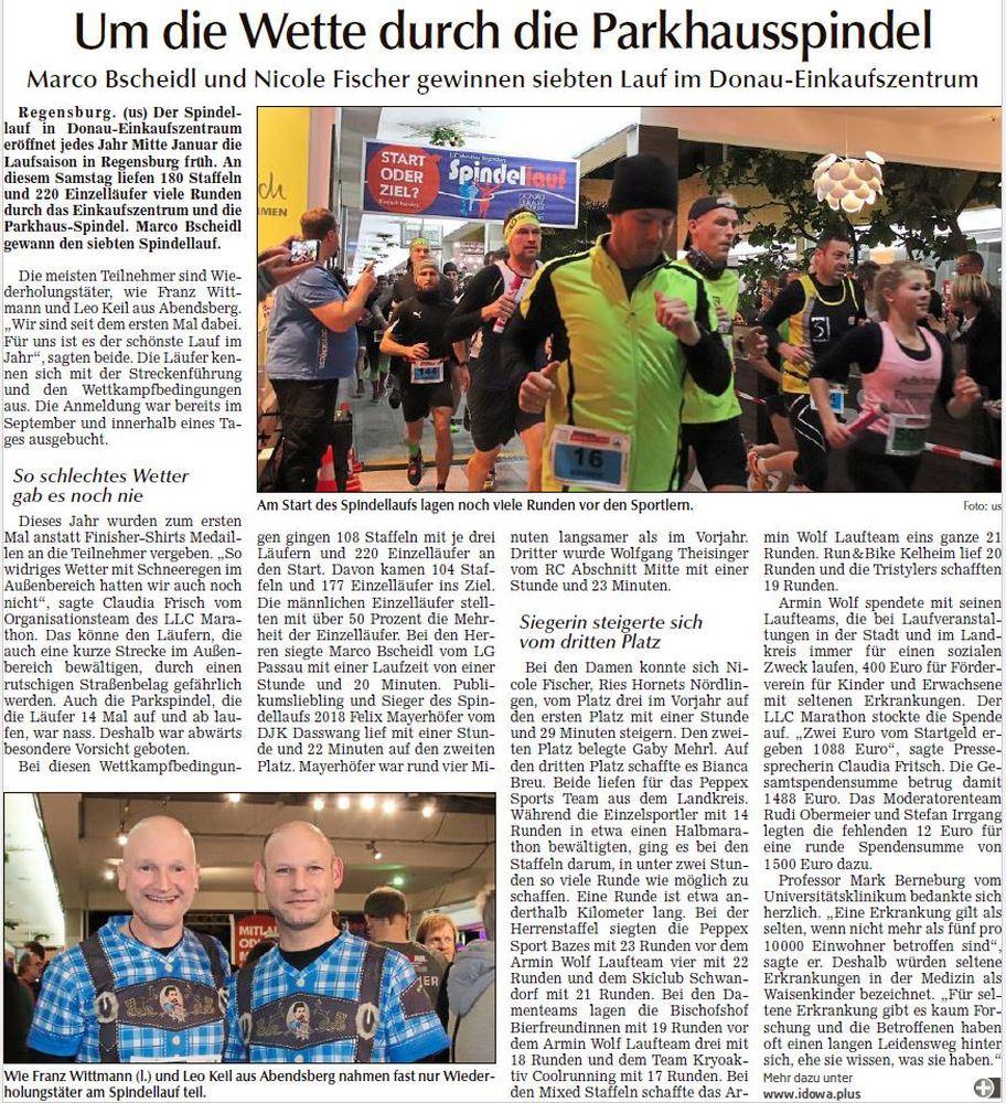 Da ich keinen Startplatz bei der offiziellen Anmeldung im September bekommen konnte, fragte ich immer wieder Laufkollegen ob nicht ein Platz für den begehrten Spindellauf abzugeben wäre. Eine Woche vorher konnte ich mich dann Nachmelden dank eines Team Minikin Athleten, der ausfiel. Coole Sache und mein Kumpel Tobi konnte ebenfalls noch einen weiteren Startplatz ergattern. Nach einer harten Trailruneinheit am Freitagabend mit dem TAR Stammtisch legte ich die Füße am Samstag tagsüber lieber hoch um am Abend einigermaßen fit zu sein. Zusammen mit Tobi fuhren wir dann ins Donaueinkaufszentrum nach Regensburg. Hier tummelten sich viele der "verrückten" Läufer. Wir holten unsere Startunterlagen und ich traf auf viele bekannte Gesichter. Klar waren Hans und Flo meine Spindellauflieblingskonkurenten mit von der Partie. Das DEZ hatte ja erst um 20 Uhr Ladenschluss, somit fiel der Startschuss auch erst um 20:30 Uhr. Armin Wolf heizte die ca. 500 Einzel und Staffelläufer mit einer coolen Moderation ein. Viele Livebands waren auf der Strecke. Die Hochkaräter tummelten sich an der Startlinie. Pscheidl Marco vom LG Passau, wie auch der Regensburger Triathlonprofi Neef Sebi der in der Staffel fürs Armin Wolf Team lief. Mein selbstgestecktes Ziel war ein Top 10 Platz. Aber war dies überhaupt möglich bei dem megastarkem Starterfeld? Klar war ich gut drauf, also sollte es möglich sein. Nach dem Startschuss ging es gleich hinaus ins Freie zum ersten Mal in die Parkhausspindel. Wir ballerten nach oben bei coolem Hardrock von einer der vielen Livebands. Runter war es sau rutschig, durch das nasskalte Wetter. Es schneite leicht und bergab war es eine Gradwanderung zwischen Ballern und Sturz. Extrem rutschig war es auch auf den ersten Metern des glatten Bodens beim Einlauf in die Einkaufspassage. Nach einer Runde lag ich auf dem 14. Gesamtplatz. Ich konnte Flo und Hans überholen und übernahm schon mal die Führung in unserem internen Duell :-) Runde für Runde schossen wir durch die Spindel. Bergab hatte ich teilweise einen 3:30 Pace drauf. In Runde 6 kam dann der megastarke Hans an mir vorbeigeschossen. Ich konnte leider nicht dranbleiben und musste mich fürs erste geschlagen geben. Aktuell befand ich mich auf dem 10. Gesamtplatz. Top 10, diesen Platz wollte ich nicht mehr hergeben. Und weiter ging es in die nächste Runde. Die Oberschenkel brannten bergauf wie Feuer, aber ich drückte durch. Die Erholung bergab hielt sich in der Spindel auch in Grenzen. Gesund war das nicht, vor allem für Bänder und Gelenke :-) Nur noch eine Runde und ich kämpfte. Endlich die Zielgerade und hier wurde ich noch von einem Einzelstarter überholt. Shit und ich wäre aus der Top 10 geflogen. Deshalb nahm ich nochmal alle Kräfte zusammen und gab auf den letzten Metern Vollgas. 0,5 Sekunden hatte ich dann die Nase vorne und sicherte mir den 10. Gesamtplatz von 152 Startern. In der Altersklasse M45 wurde ich Dritter in einer Zeit von 1:27:35. Dies war meine schlechteste Spindellaufzeit ever, aber die Verhältnisse waren ebenfalls die Schlechtesten. Hans deklassierte mich und nahm mir 1 Minuten ab. Wenigstens konnte ich meinen Lieblingsgegner Flo knapp hinter mir lassen :-) Auch Tobi holte sich einen sau starken 19. Platz in 1:31:16. Mein erster Wettkampf 2019 konnte sich im Großen und Ganzen mit einem 10. Gesamtplatz doch sehen lassen. Auf das kann ich in der neuen Saison aufbauen...