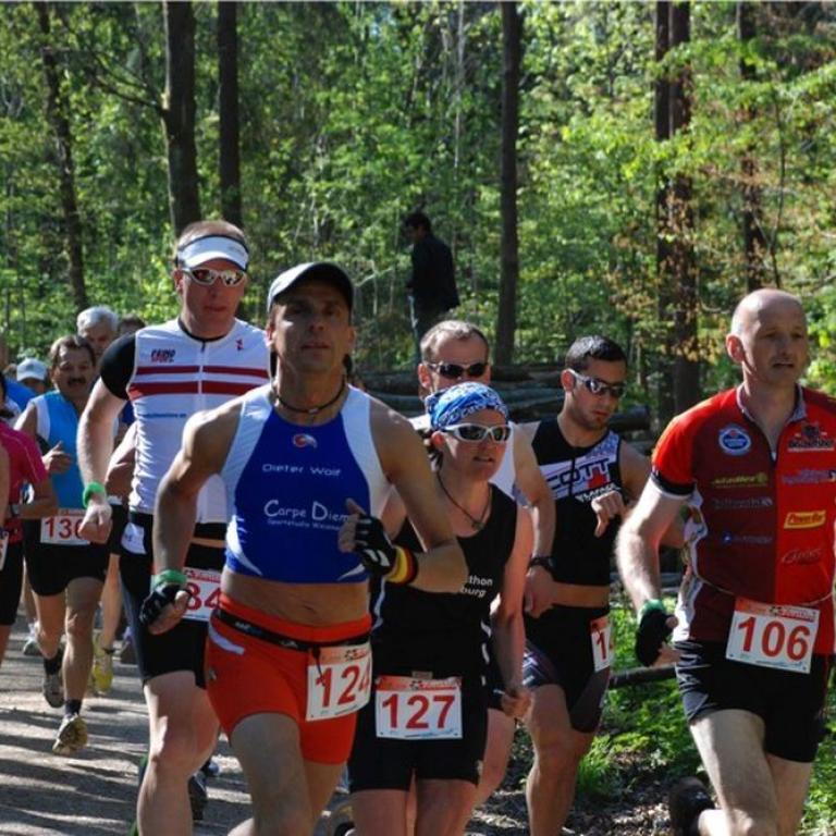 Leider konnte ich die letzten 3 Wochen nicht trainieren, da ich große Probleme mit dem Knie hatte. Wieder einmal eine Fußballverletzung. Trotzdem ließ ich es mir nicht nehmen am Duathlon in der Kurzdistanz (7,5 km - 38 km - 5 km) zu starten. Der Lauf ging eine super schöne Strecke durch den Wald. Hier konnte ich noch gut mithalten, aber schon nach ein paar Kilometern auf der Radstrecke merkte ich das fehlende Training auf dem Bike und wurde immer wieder überholt. Restlos abgeschlagen startete ich die letzten 5 Kilometer Lauf, wo ich noch ein paar Plätze gutmachen konnte. Zum Schluß kam ich als Gesamt 41. von 56. männlichen Teilnehmern ins Ziel. Mir stand die Enttäuschung ins Gesicht geschrieben, was mich aber motiviert mehr zu trainieren......