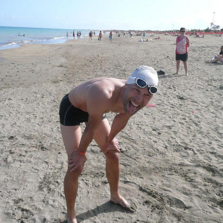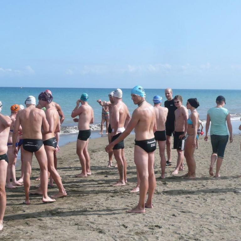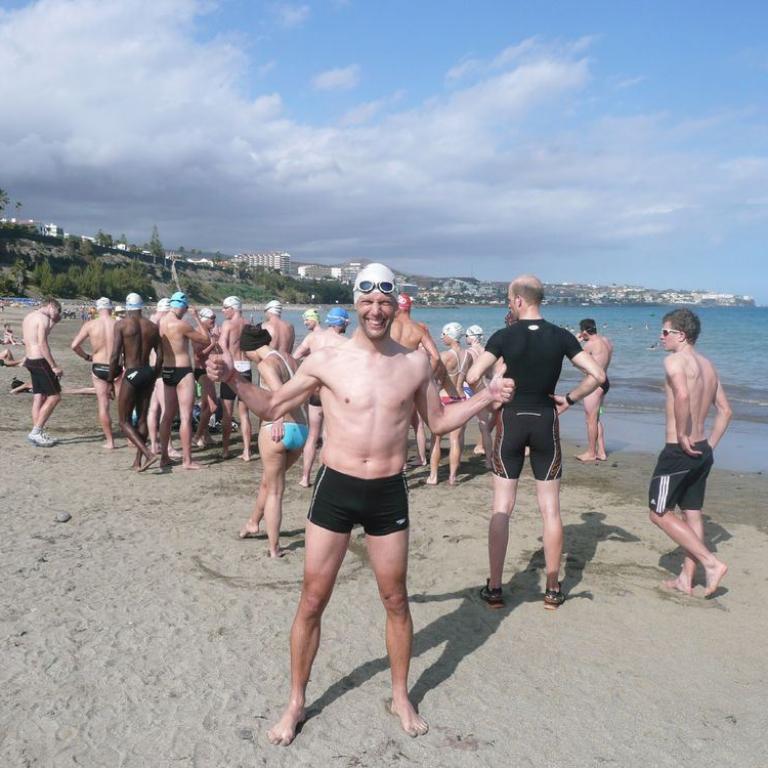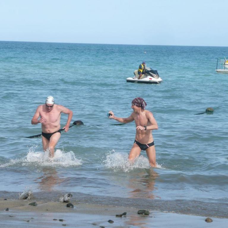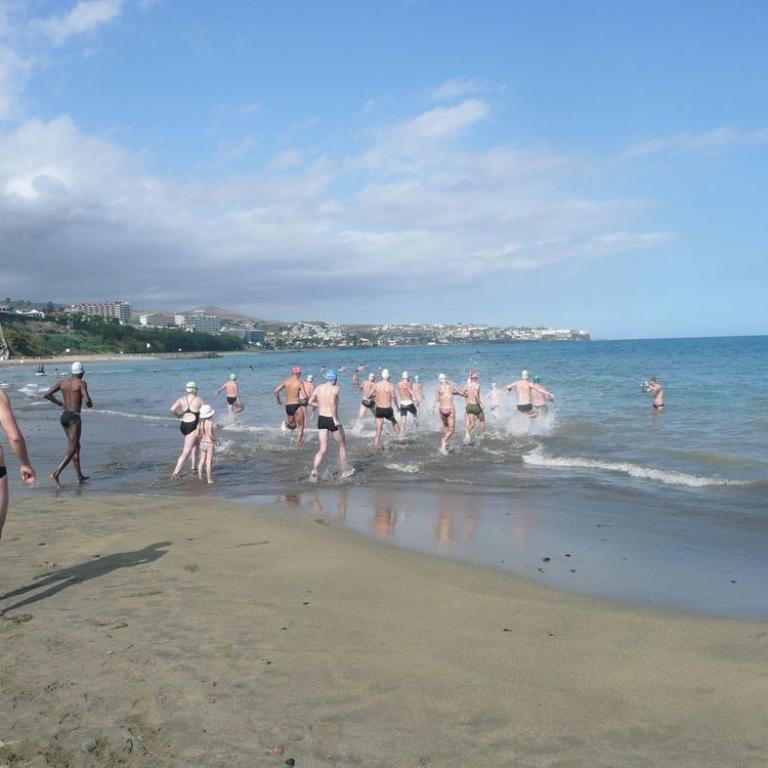 Die Nacht war zum ersten Mal seit Tagen ruhig und ohne Husten, so dass ich entspannt mein Frühstück genießen konnte. Leider hatte Brigitte ihre Stimme verloren und ihr Hals schmerzte. Um viertel nach 9 hatte ich wieder einen Termin beim Arzt zur alltäglichen Spritze. Trotzdem schaffte ich es bis um 10 Uhr bei Ralfs Radgruppe zu starten. Wir fuhren in ziemlich zügigem Tempo bis nach Fataga. Ich fühlte mich sehr gut, so dass ich an den Radprofis dran bleiben konnte. Ab Fataga war ein Bergzeitfahren über 700 Höhenmeter und 4,5 Kilometer angesagt. Ich fuhr außer Konkurrenz mit und schaffte die Strecke in 25 min. Im Anschluss liefen wir noch auf der Bahn 5 km, wo ich mich trotz meiner Krankheitsvorgeschichte ziemlich gut fühlte und die Strecke in 21 min und 53 Sekunden zurücklegen konnte. Auch mein Puls war besser als erwartet. Nur sporadisch hatte ich noch einen Hustenreiz. 2 Stunden konnte ich mich erholen, bevor es mit den anderen Laufstilanalyseathleten zum Strand von Playa del Ingles ging. Kurzfristig, dank meiner schnellen Genesung, entschloss ich mich am härtesten Wettkampf des Jahres teilzunehmen. Dem Swim&Run Gran Canaria. Wir waren fast 20 Teilnehmer die sich in die Fluten stürzten. 3 Runden mit ca. 300 Meter im Wasser und 150 Meter an Land waren zu bewältigen. Im Wasser hatte ich ganz schön mit den Wellen zu kämpfen, aber ich biss mich durch. Lauftechnisch konnte ich wieder Boden gut machen, so dass ich mit einem 11. Platz von 14. in der Herrenwertung zufrieden geben konnte. Trotzdem war ich überrascht was nach 5 Tagen Krankheit noch in mir steckte. Am Abend gab es noch eine klasse Siegerehrung, die Ralf mit Ironie und Spaß abhielt. Jeder bekam einen Preis und wurde geehrt. Ein gelungener Tag ging zu Ende. Hoffentlich hält meine Gesundheit her und hoffentlich wird es bei Brigitte nicht schlimmer.