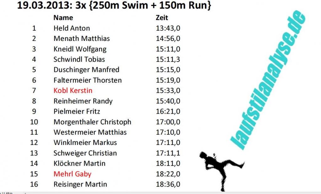 Swim&Run Gran: 11. Platz von 14 in der Herrenwertung