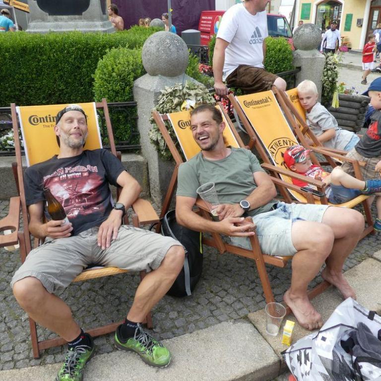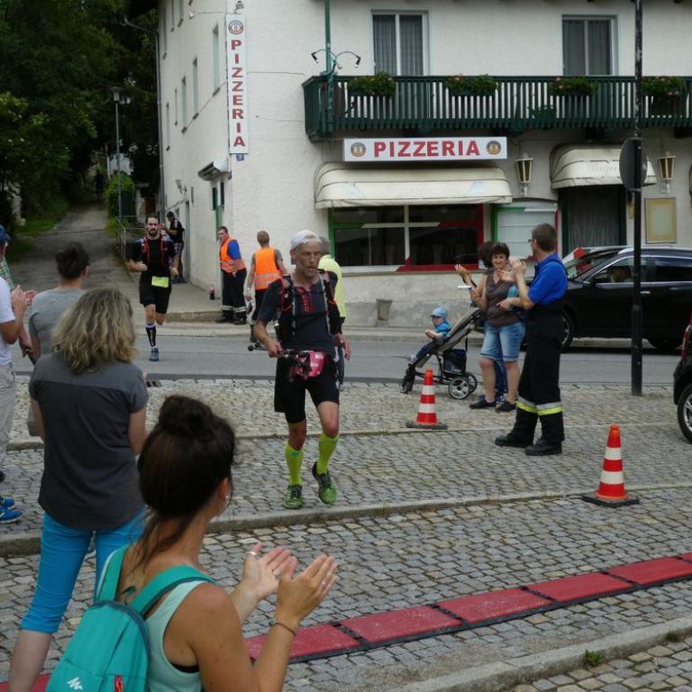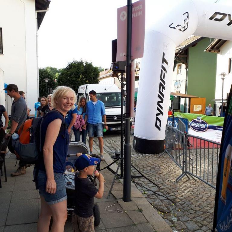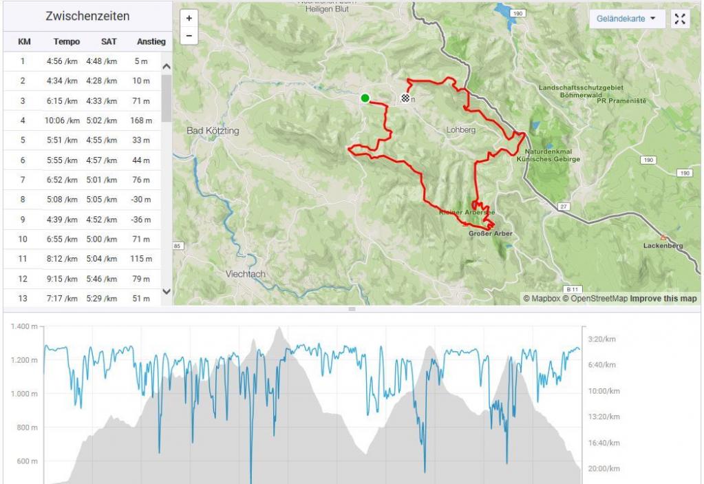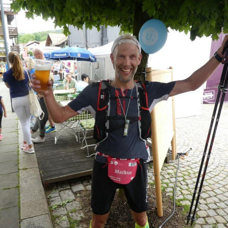 Mal schauen was meine 3. Teilnahme am Ultra Trail Lamer Winkel bringt. Beim Marathon vor 3 Wochen konnte ich endlich die 3 Stundenmarke knacken und war eigentlich auf absolutem Bestzeitenkurs. Leider kämpfe ich noch immer mit der Achillessehne bzw. Fersenknochen und konnte dadurch noch immer keine langen Läufe absolvieren. Auch die Traileinheiten hielten sich in Grenzen. Aber motiviert war ich natürlich wie eh und je. Ich stand um 8 Uhr am Start mit Martin und Michael im Seepark Arrach. Wir wurden wie immer von Musikanten über die Startlinie gespielt. Wir mussten zuerst ein paar Kilometer flach über Wiesen laufen bevor es zum Eck hochging. Hier kam ich nach 54 Minuten 9 km und 500 Hm an der ersten Verpflegungsstation an. Es lief ganz gut und ich konnte mich nicht beschweren. Auf den nächsten 15 Kilometer geht es auf teils sehr schwierigen Trails auf einen der schönsten Höhenzügen des Bayerischen Waldes, entlang des Goldsteiges über 10 Tausender zum Gipfel des Großen Arber auf 1456m. Ganz klar durfte der obligatorische Sturz, diesmal nach 12 km nicht fehlen :-) Ich fädelte in einer Wurzel ein und machte mal wieder einen Abflug nach vorne, was ich ja schon gewohnt war. Wie immer rollte ich mit einer Judorolle ab und musste erst Bestandsaufnahme machen. Außer viel Dreck und ein paar Schrammen war nix passiert. Und weiter konnte es gehen. Die Trails machten mir viel Spaß und bis ich mich versah stand ich nach 3 Stunden auf dem Arbergipfel. 24 km mit 1500 Höhenmetern lagen hinter mir. Am Arber konnte ich an der Verpflegungsstation Energie auftanken und weiter lief ich auf Forstwegen und Trails 700 Höhenmeter bis zum kleinen Arbersee, den wir umrundeten. Meine Füße fühlten sich noch immer gut an. Vom Kleinen Arbersee ging es wieder nach oben zum Langlaufzentrum Scheiben wo mich Brigitte und unser kleine Timi erwarteten. Ich blieb kurz an der Verpflegungsstation stehen und weiter ging die Ballerei :-) Der Anstieg zum Zwercheck führt über stark verwurzelte und verblockte Trails. Der Lohn dafür ist der gigantische Ausblick auf die gesamte Strecke, die bisher in den Beinen steckt. Nach dem sehr steilen Downhill folgt eine leicht abfallende Schotterstraße von 4,7 Km Länge. Hier sauste ich mit einem 4:20 er Schnitt dahin. Endlich kam der letzte Anstieg bis zum großen Osser mit seinen 1293 m. Ich fühlte mich nach den fast 50 Kilometern noch immer frisch und fit und musste mich nicht einmal quälen. An der letzten Verpflegungsstation am Osser tankte ich nochmal Cola und Iso auf, bevor es über den kleinen Osser, Osserwiese und dann coolen, aber schwierigen Trails bis zur Maria Hilf Kapelle (oder doch Winkl hilf :-)) ging. Langsam wurden jetzt doch die Füße schwerer und beim Steigen über die Felsen musste ich aufpassen keinen Krampf zu bekommen. Endlich ballerte ich in den "Holy Trail" hinunter bis Lam. Den letzten Kilometer gab ich nochmal so richtig Gas und kam auf einen 4 er Schnitt. Ich lief über den Marktplatz ins Ziel, wo mich und die anderen Läufer viele Zuschauer mit Beifall empfingen. Ich kam als 55 Gesamt von 328 Männern in 6 h 53 Minuten auf 55 km und 2600 Höhenmetern ins Ziel. Ich war langsamer als vor zwei Jahren, aber das lag an der um 3 Kilometer längeren Strecke. Im Ziel gab es wie immer eine sehr gute Verpflegung. Das ganze Rennen war top organisiert und machte riesig Spaß. Ich marschierte dann zur nötigen Dusche, wo ich eine durch den Laufrucksack aufgebrannte Schulter, 2 blaue Zehennägel, schmerzende Ferse und noch ein paar weitere Ultratrailblessuren feststellen musste :-) Aber das gehört zum Spaß dazu... Später gingen wir noch mit den Scheifels, Fuchsn und Zankls zum Pizzaessen, wo wir das Rennen revue passieren ließen.