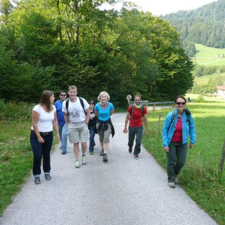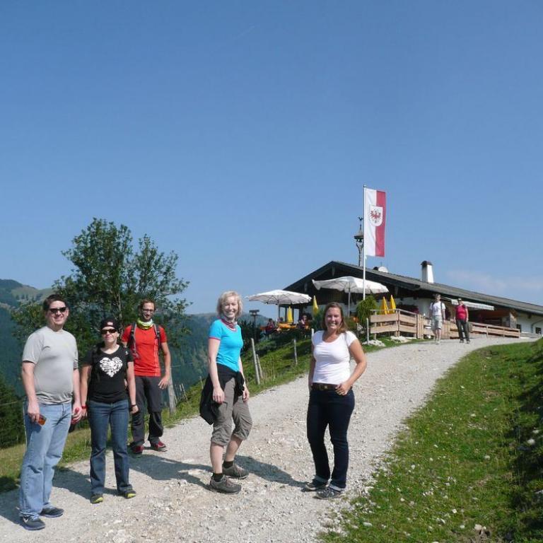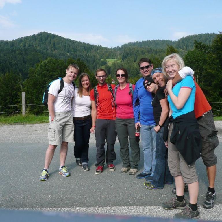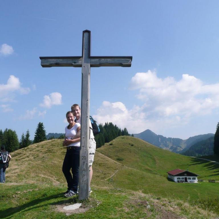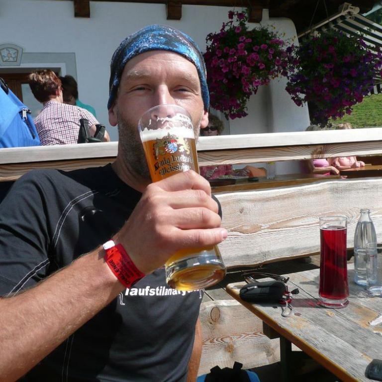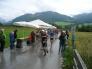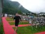 Freitagabend fuhren wir bei herrlichem Sonnenschein, vorbei am Chiemsee, nach Grassau in die Ferienwohnung meiner Eltern. Am Samstag holten wir die Startunterlagen am Walchsee, wo wir uns mit weiteren Laufstilanalyseathleten trafen. Das schöne Wetter musste genutzt werden und somit plante ich schon vorab eine kleine Wandertour auf die 1241 m hohe Karspitze. Eigentlich sollten wir ja einen Tag vor dem Wettkampf die Füße hochlegen, aber so eine kleine Wanderung hat noch nie geschadet. Also fuhren wir mit 2 Autos zum Wanderparkplatz Ritzgraben 10 km entfernt von Walchsee. Bianca, Sabine und Freund, Roland, Katrin, Christoph, Brigitte und ich starteten um ca. 10 Uhr die kleine Tour. Unser erstes Ziel war die Wildbichler Alm auf 1040 m. Schon auf dem Weg hatten wir eine herrliche Aussicht auf den Zahmen Kaiser und das Inntal. Ab der Hütte wählten wir die steilere Variante und standen nach insgesamt knapp 1 Stunden und 500 Hm auf dem Gipfel der Karspitze. Der Ausblick und das Wetter waren herrlich. Natürlich durfte beim Abstieg eine Einkehr in der Alm nicht fehlen. Zur Stärkung gab es Weißbier, Wurstsalat und Sülze. Am frühen Nachmittag erreichten wir wieder den Wanderparkplatz. Am Nachmittag gab es ein kleines Nickerchen in der Wohnung in Grassau, bevor wir uns alle wieder am Walchsee trafen. Christoph, Roland und ich radelten noch eine halbe Stunde auf der Wettkampfstrecke, bevor wir unsere Bikes in der Wechselzone abgaben. Am Abend gingen wir noch zur Pasta Party, wo wir auch noch die restlichen Laufstilanalyseathleten trafen. Viele Profis, wie Timo Bracht, Markus Fachbach, Yvonne van Vlerken und viele mehr, waren ebenfalls gemeldet, was den Wettkampf noch attraktiver macht.