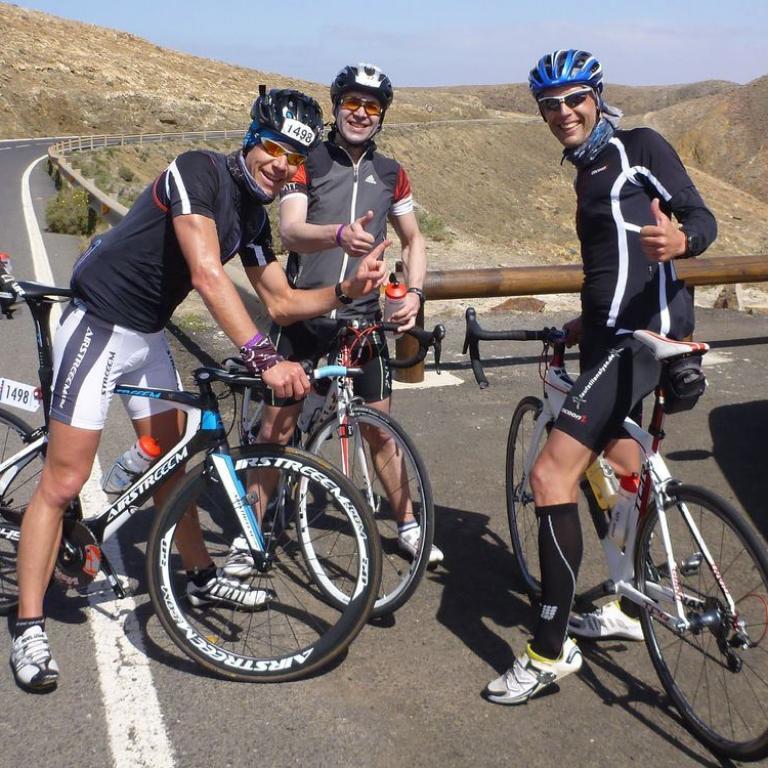 Um 7 Uhr starteten wir zum Morgenlauf. Ziel war ein 7 km entfernter Leuchtturm mit ca. 500 Höhenmetern. Ich lief mit den Schnelleren noch eine 1,5 km Hotelrunde und erst dann bogen wir Richtung Leuchtturm ab, damit wir alle ziemlich gleich oben ankommen. Auf der landschaftlich reizvollen Strecke sausten wir nach oben, wo wir eine herrliche Aussicht hatten, aber schnell wieder den Rückweg antraten. Nach 1 Stunde und 16 Minuten und 16 Kilometern erreichten wir wieder unser Hotel. Nach dem Frühstück ging es auch gleich mit dem nächsten Wettkampf weiter. Entsprechend dem Ergebnis des gestrigen Swim&Run starteten wir heute in umgekehrter Reihenfolge mit Zeitabstand beim Swim&Bike. Es mussten immer 3 Bahnen (150 m) durchschwommen werden, dann raus aus dem Wasser und einmal um den Pool laufen. Das Ganze insgesamt 10 Mal. Ich war super drauf und konnte viele überholen. Nach 28 Minuten ging ich aus dem Wasser, zog mich in der Umkleide um und schob mein Rad bis zum Hotelausgang, wo wir dann 20 Kilometer im GA2 Tempo bis zum Ziel auf einem Berg bei Tuineje radeln mussten. Leider kam ich nur 5 Meter, da ich einen Platten hatte. Scheiße dachte ich mir. Na gut dann breche ich ab, aber das ging mir doch gegen den Strich und ich wechselte den Schlauch und fuhr dann verspätet, ohne Chance doch noch los. Leider wurde es nichts mehr aus meiner Verfolgungsjagd. Nur einen Athleten konnte ich noch kurz vor dem Ziel überholen. Aber ich zeigte Kampfgeist und zog das Rennen durch. Wir radelten dann alle locker zurück zum Hotel. Nach der wohltuenden Dusche kauften wir uns eine gemütliche Halbe Bier in der Sonne. Um 17 Uhr gab es noch ein hartes Rumpfstabi Training bevor wir nach der nächsten Dusche zum Abendessen gingen.