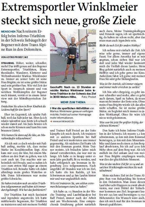 Interview Ironman und Extremsportler Markus Winklmeier am 18.08.2022 (Straubinger Tagblatt) Download als PDF |