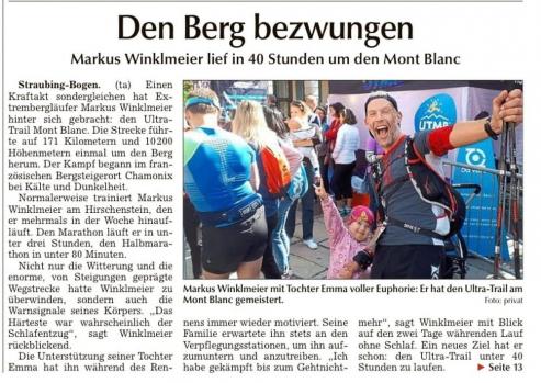 Interview über die UTMB World Series in Chamonix Mont Blanc 23.10.2023 (Straubinger Zeitung) Download als PDF |