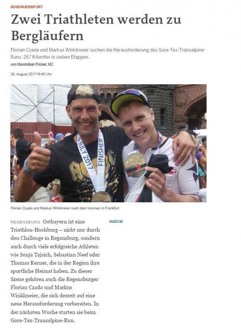 Interview Ironman und Extremsportler Markus Winklmeier am 18.08.2022 (Straubinger Tagblatt) Download als PDF |
