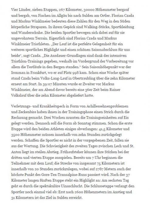 Interview über die UTMB World Series in Chamonix Mont Blanc 23.10.2023 (Straubinger Zeitung) Download als PDF |